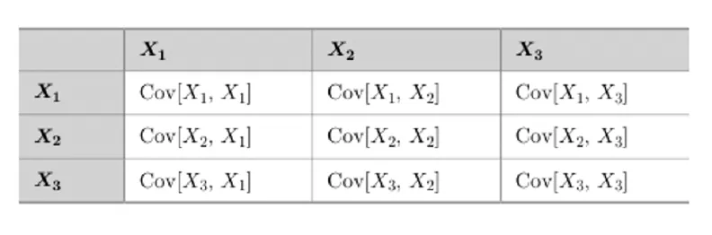 를 사용하면 공분산행렬을 벡터 및 행렬식으로 만들 수 있다.