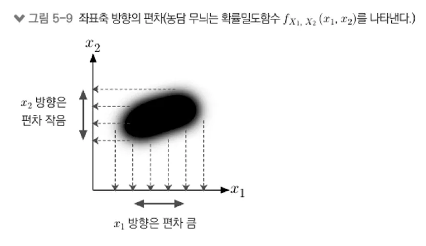 공분산행렬 → 대각 성분에 대해 각 성분의 분산