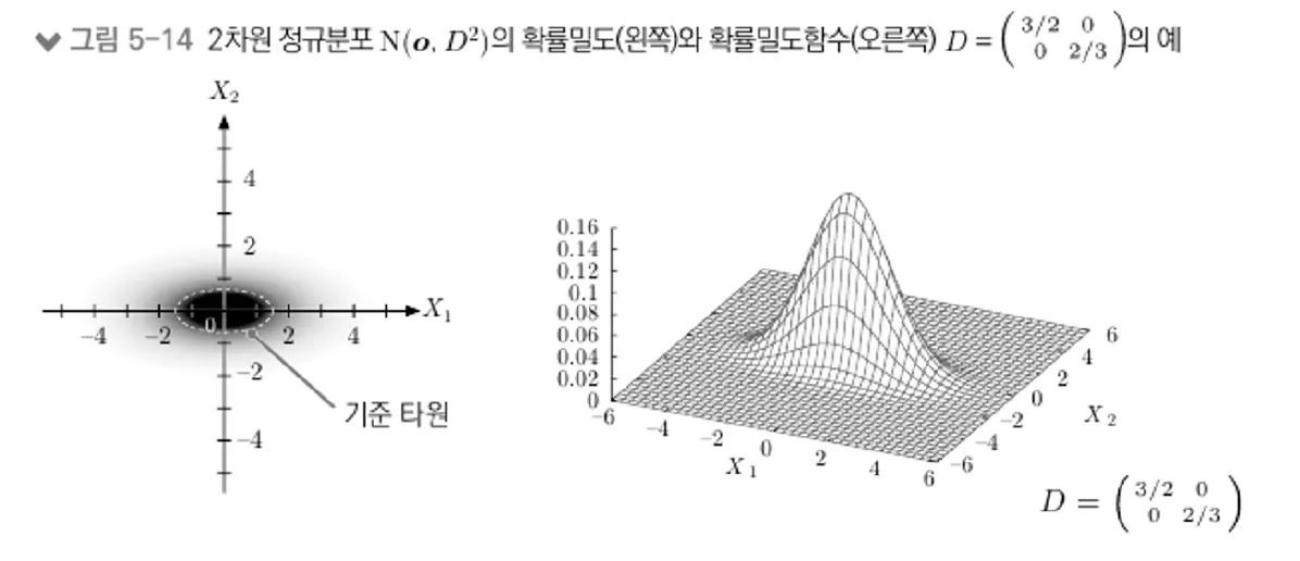 1차원일 때는 표준정규분포를 따르는 확률변수 을 확대 축소하거나 평행이동함으로써 여러 정규분포를 따르는 확률변수 을 만들었다. → 차원 표준정규분포를 따르는 확률변수 를 변환해서 여러 가지를 변화를 만들어 낸다.