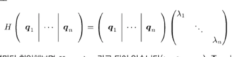 위 식을 열마다 확인해보면 → 는 의 고유벡터(고윳값은 )