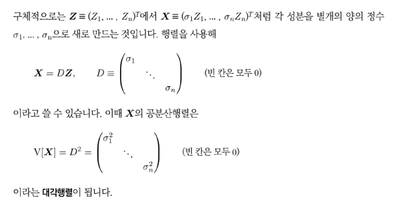 다변량 표준정규분포를 따르는 에 어떤 대각행렬 를 곱해서 을 만든다.